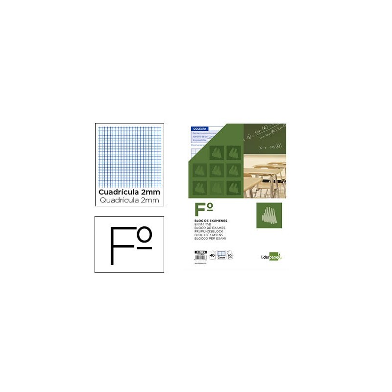 fiber_manual_record Adicionar à Wishlist Avaliação(0) BLOCO EXAMES LIDERPAPEL FOLIO 40FLS MILIM.-TEXTO ESPANHOL- 3,44 €2.8 s/Iva.Preço