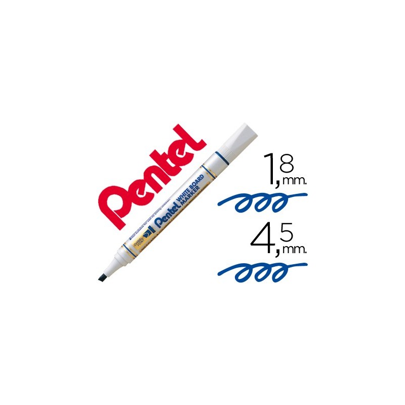 Marcador económico, para quadro branco. Ponta biselada ideal para utilização em quase todo o tipo de quadros brancos. Disponível em 3 cores. Ponta de 4,5 mm.