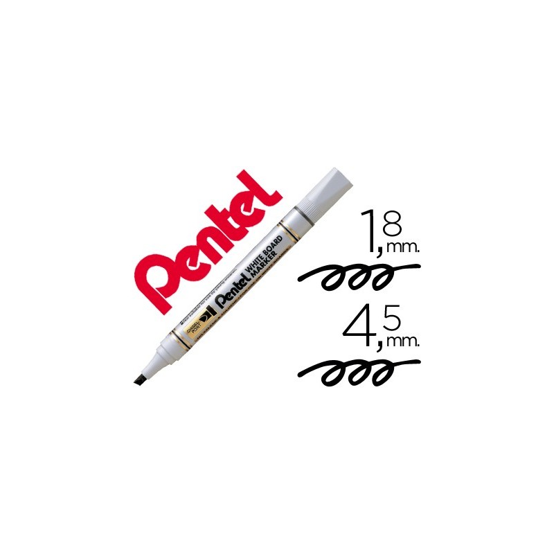 Marcador económico, para quadro branco. Ponta biselada ideal para utilização em quase todo o tipo de quadros brancos. Disponível em 3 cores. Ponta de 4,5 mm.