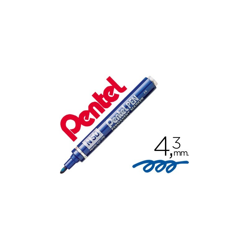 Marcador de ponta redonda com tinta permanente à prova de água. Ideal para quase todas as superfícies. 1.000 metros de distância de escrita. Ponta de 4,3 mm. Corpo metálico.