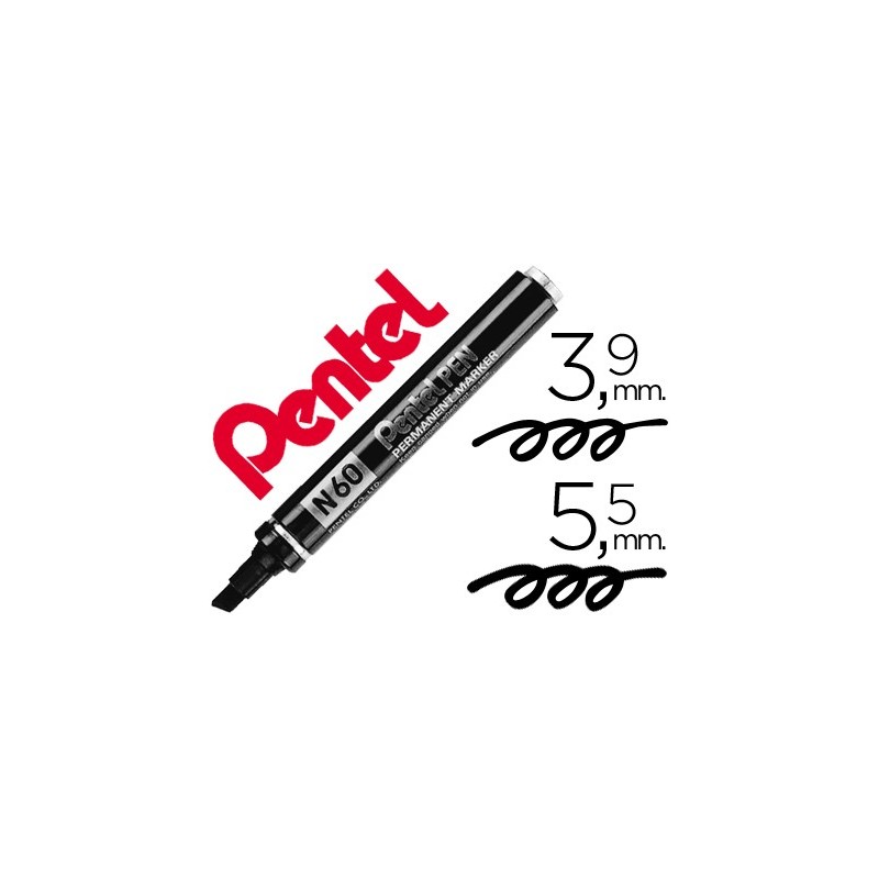 12un MARCADOR PENTEL N60 PERMANENTE BISELADO PRETO