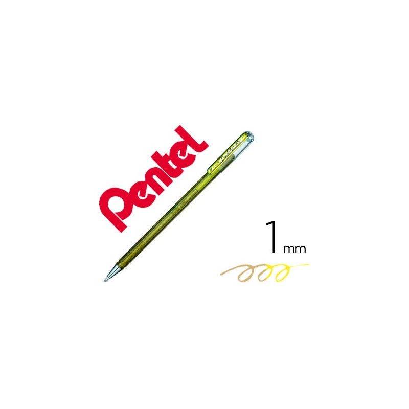 Roller gel k110 dual Metallic (purpurina). A mistura da tinta pigmentada e glitter em 2 tons permite a criação de cores brilhantes que altera conforme o ângulo. Disponível em 8 cores. Ponta de 1,0 mm.