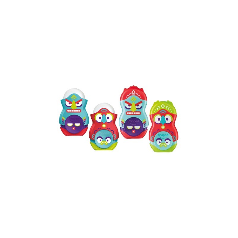 24un APARA LAPIS PLASTICO MAPED LOOPY TOTEM PLASTICO 1 USO COM BORRACHA CORES SORTIDAS (