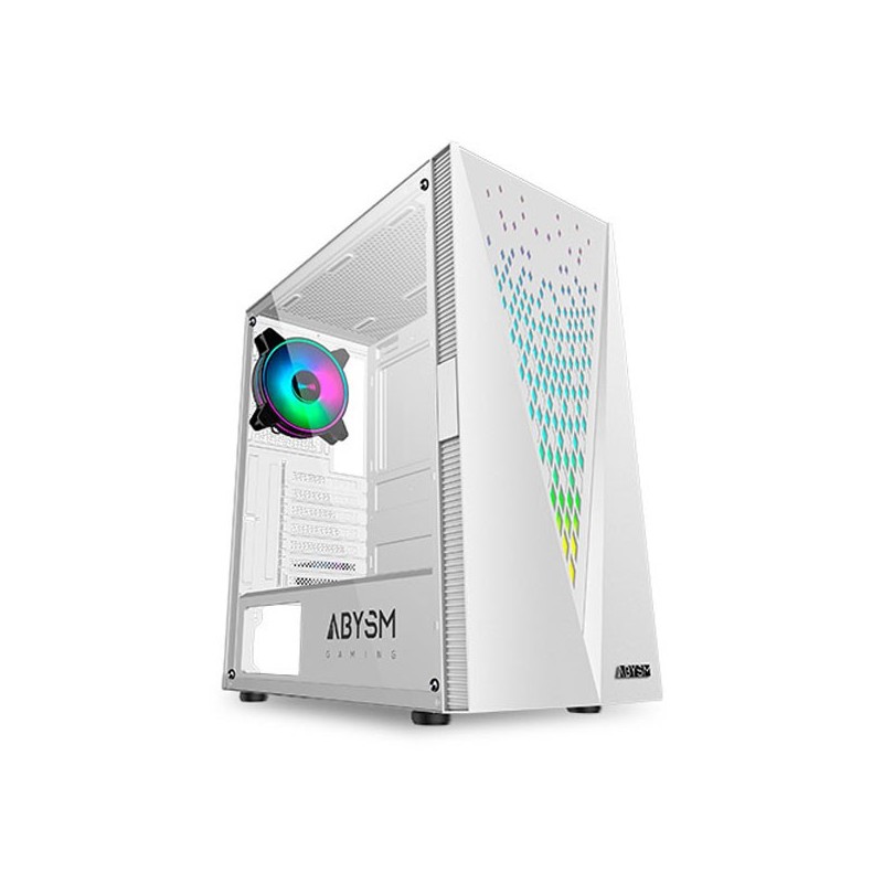 ABYSM CAIXA ATX DANUBE KOLPA WHITE ARGB TEMPERED GLASS- 1xUSB 3.0+2 ABYSM Danube Kolpa White. Forma: Tower, Tipo: PC, Cor do produto: Branco. Localização da fonte de alimentação: Fundo. Ventoinhas frontais instaladas: 3x 120 mm, Diâmetros de ventiladores