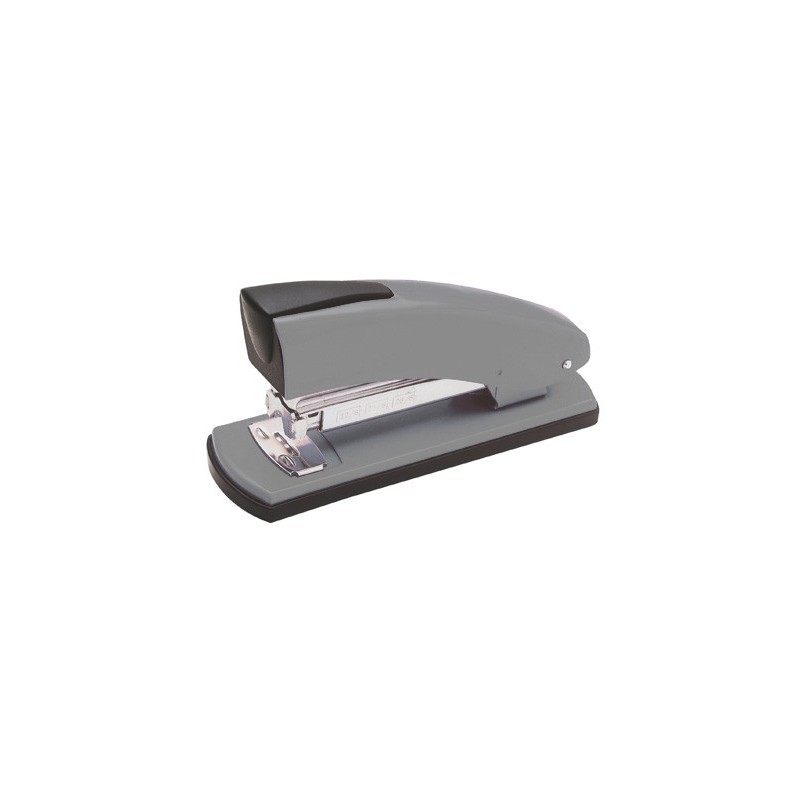 Metálico cromado. Profundidade do agrafado 7,2 cm da margem da folha. Carga 2 pentes (100 agrafes) usa agrafes nº 22/6, 24/6 e 26/6. Com base plástica antideslizante. Com carregador duplo antiobstrução. Incorpora o agrafado PGT (Paper Grip Technology) pa