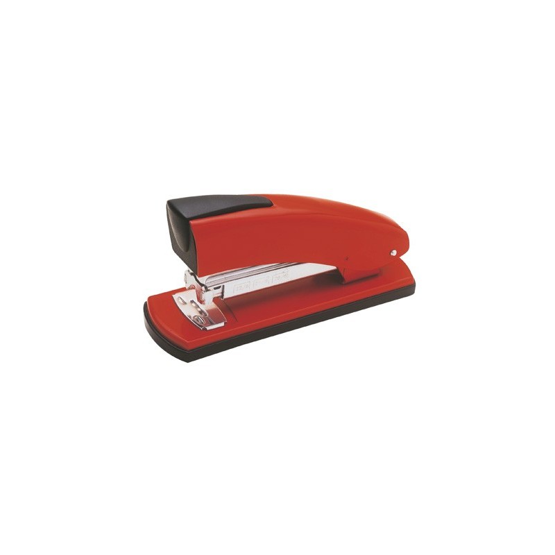 Metálico cromado. Profundidade do agrafado 7,2 cm da margem da folha. Carga 2 pentes (100 agrafes) usa agrafes nº 22/6, 24/6 e 26/6. Com base plástica antideslizante. Com carregador duplo antiobstrução. Incorpora o agrafado PGT (Paper Grip Technology) pa