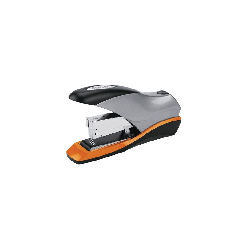 Agrafador de uso intensivo com mecanismo metálico e alavanca de plástico. Para agrafar com mais potência e sem esforço. Profundidade de entrada: 6,8 cm. Agrafa até 70 folhas. Inclui uma caixa de 500 agrafes. Cor combinada: cinza, laranja e preto. Medidas