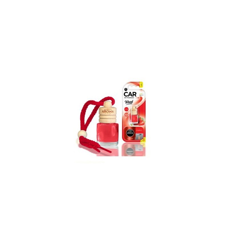O Ambientador Wood Strawberry da Aroma Car, possui uma madeira de alta qualidade que absorve o liquido contido na garrafa. Liberta uma fragância doce e fresca de morango.