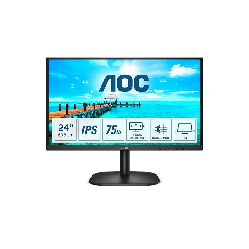 AOC B2 24B2XDA. Tamanho do ecrã na diagonal: 60,5 cm (23.8"), Resolução: 1920 x 1080 pixels, Tipo de HD: Full HD, Tecnologia de apresentação: LED, Superfície do visor: Fosco, Tempo de resposta: 4 ms, Proporção de imagem nativa: 16:9, Ângulo de visão (ho