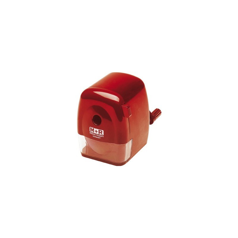 Apara lápis de secretária, manual, com manivela. Braçadeira que evita a rutura. Função de paragem automática. Seleciona o diâmetro da ponta automaticamente. Medidas, 95 x 71 x 110 mm.