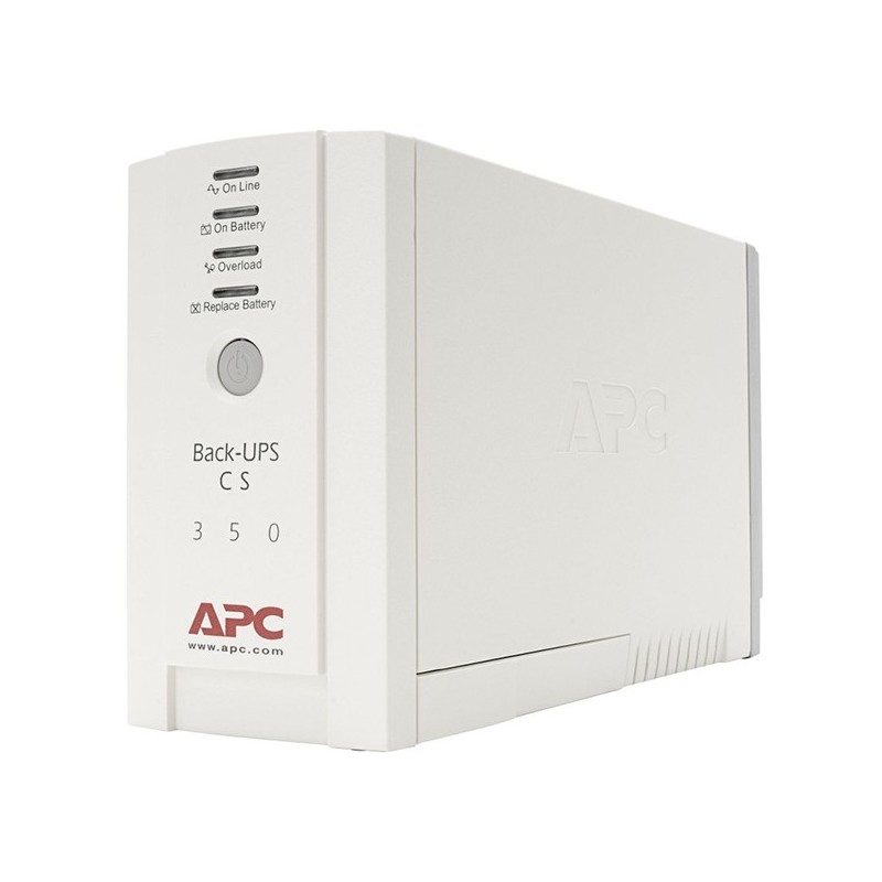 Ups APC de 350va, topologia Offline. 3 tomadas com autonomia e protecção de picos tensão, e 1 tomada só para protecção de picos tensão. Ligação SERIE/USB. Shutdown automático. Baterias "hot-swappable". Peso 7KG. Bateria de substituição RBC2.Inclui: CD co