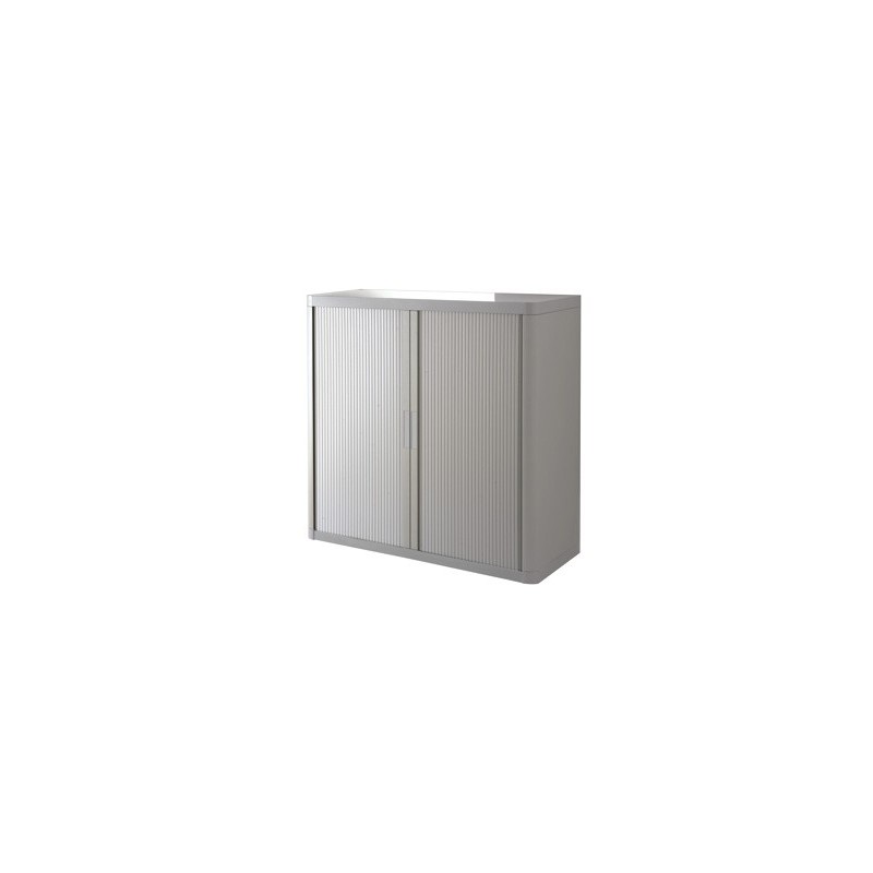 Armário de fácil montagem de cor cinza. Estrutura de 25% em aço e 75% poliestileno. Portas tipo persianas em polipropileno de 8 mm. Pega e fechadura com 2 chaves incluídas. Capacidade para 9 pastas de arquivo. Montagem em 5 minutos.