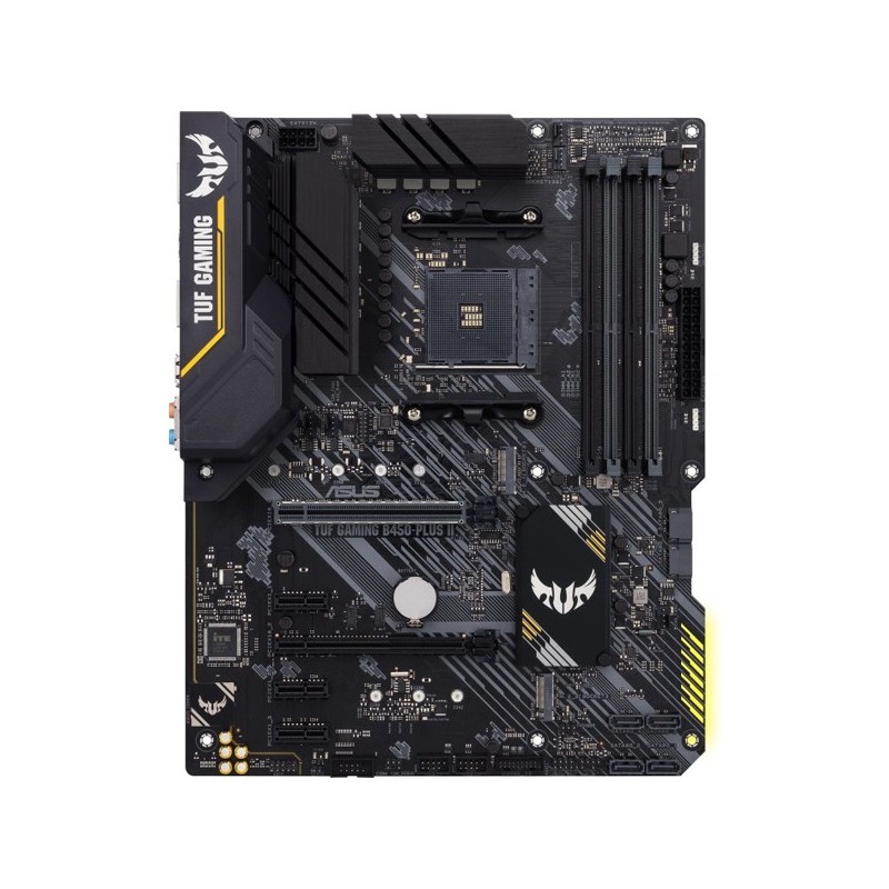 ASUS TUF GAMING B450-PLUS II. Fabricante do processador: AMD, Socket do processador: Socket AM4, Processador: AMD Ryzen 3 3rd Gen, 3rd Generation AMD Ryzen 5, 3rd Generation AMD Ryzen 7, AMD Ryzen 9 de 3ª.... Tipos de memórias compatíveis: DDR4-SDRAM, M