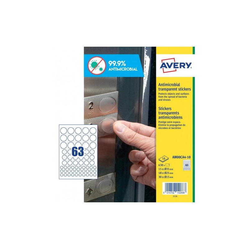 Etiquetas transparentes e removíveis com um revestimento antimicrobiano. Ao reduzir drasticamente as condições que os micróbios necessitam para sobreviver e se multiplicar, são 99.9% eficazes contra batérias, vírus e fungos. O ingrediente activo do reves