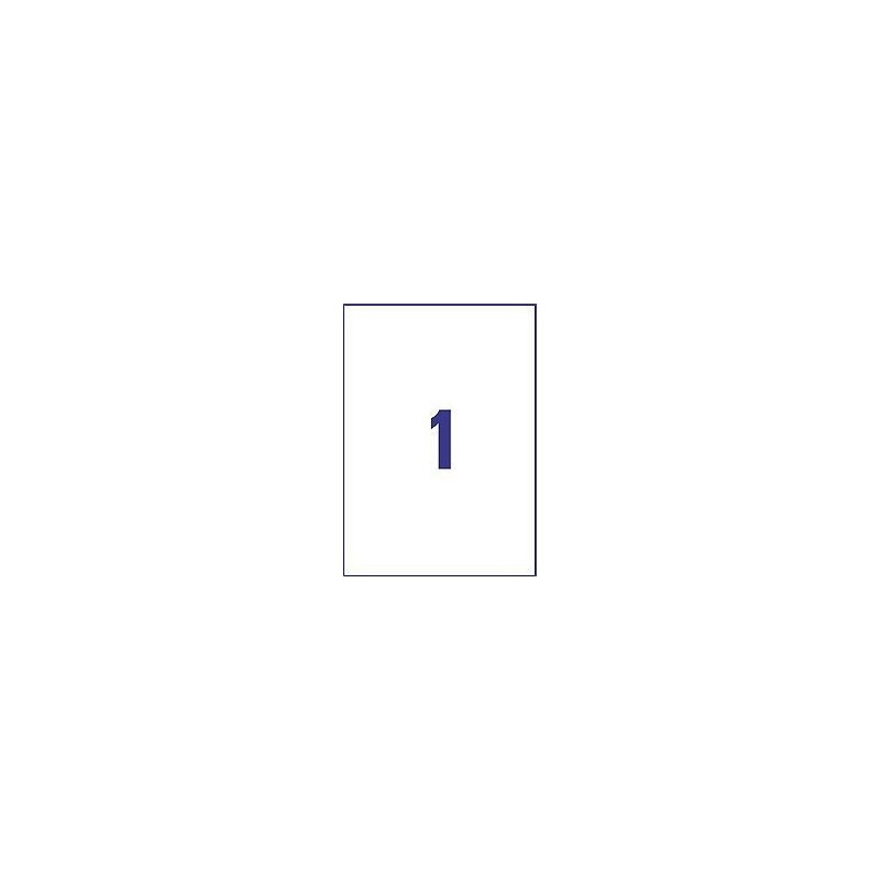 Etiquetas para impressoras laser em poliester extra resistente e adesivo especial para aderir a superfícies hostis. Suportam humidade, baixas e altas temperaturas, gorduras, etc. Dimensões 210 x 297 mm, 1 etiqueta por folha, 20 folhas por caixa