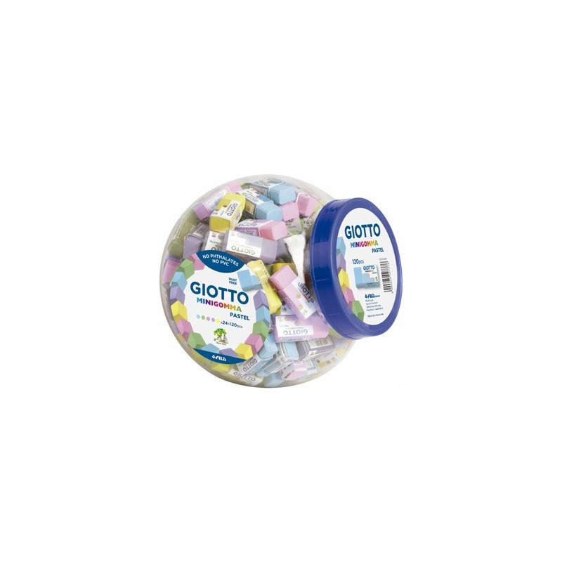 A linha Giotto de borrachas apagadoras é enriquecida com as borrachas Giotto de Pastel em TPR (Thermal Plastic Rubber).