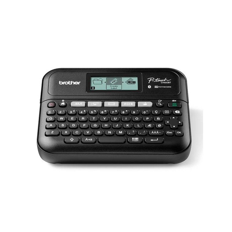 Rotuladora eletrónica de secretária com teclado, conexão a PC e móvelLarguras de fita: 3,5 / 6 / 9 / 12 / 18 mmCorte de fita manual - Teclado QWERTY - Adaptador CA - Mala de transporte- Conexão a PC- Conexão BluetoothPesos e dimensõesLargura187 mmProfund