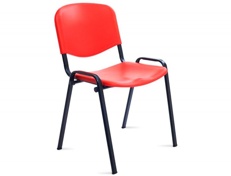 Cadeira empilhável. Costas e assento: Polímero técnico. Cores: azul, cinzento, preto e vermelho. Base: Estrutura metálica tubular reforçada pintada em epóxi preto. Altura da cadeira: 81 cm. Altura do assento: 48 cm. Largura do assento: 57 cm. Profundidad