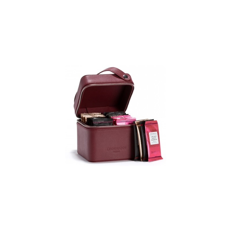 CAIXA "JOURNEY" Estojo de imitação de pele vermelha com um sortido de 32 saquetas de Cristal® envelopadas.