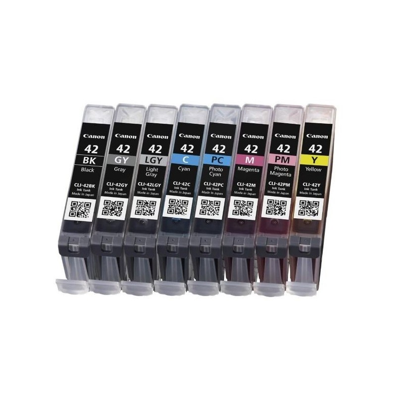 Canon CLI-42 BK/GY/LG/C/M/Y/PC/PM Multipack- Pack de 8preto com base da matiz, cyan com base de corante, magenta com base de corante, amarelo com base de corante, ciano foto com base de tinta, magenta foto com base de tinta, cinzento claro com base de co