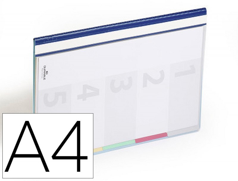 Pasta com cinco separadores para organizar todo o tipo de documentação. Capa transparente formato Din A4 com bolsa e folha de índice em branco. Com etiqueta para realizar marcações na lombada. Contracapa em PVC azul. Com cinco divisões, cada uma com sepa