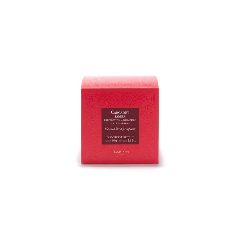 Chá Bolsas Carcadet Samba Dammann 20un Evocando o sol, os trópicos e cores vibrantes, o Samba é uma alegre mistura de flores de hibisco, casca de rosa mosqueta, pedacinhos de maçã e casca de laranja com um delicioso toque de manga e frutas tropicais.