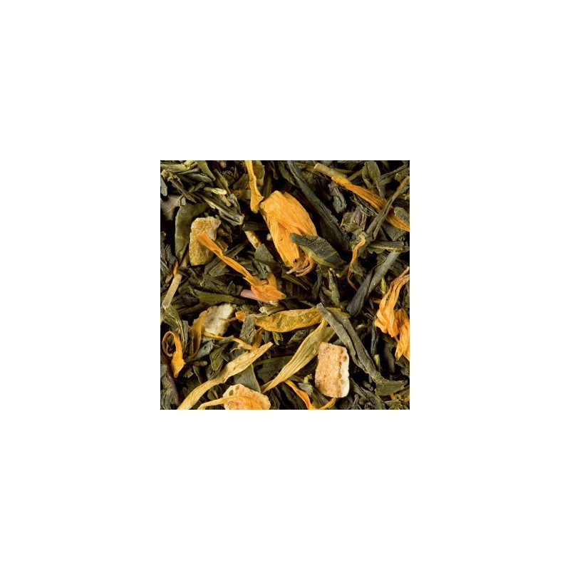 Um toque de exotismo para este blend onde, aromas a pão de gengibre e laranja amarga, cascas de laranja e pétalas de flores compõem, com as notas frescas e frutadas do chá verde, um chá aromatizado incrível e generoso.