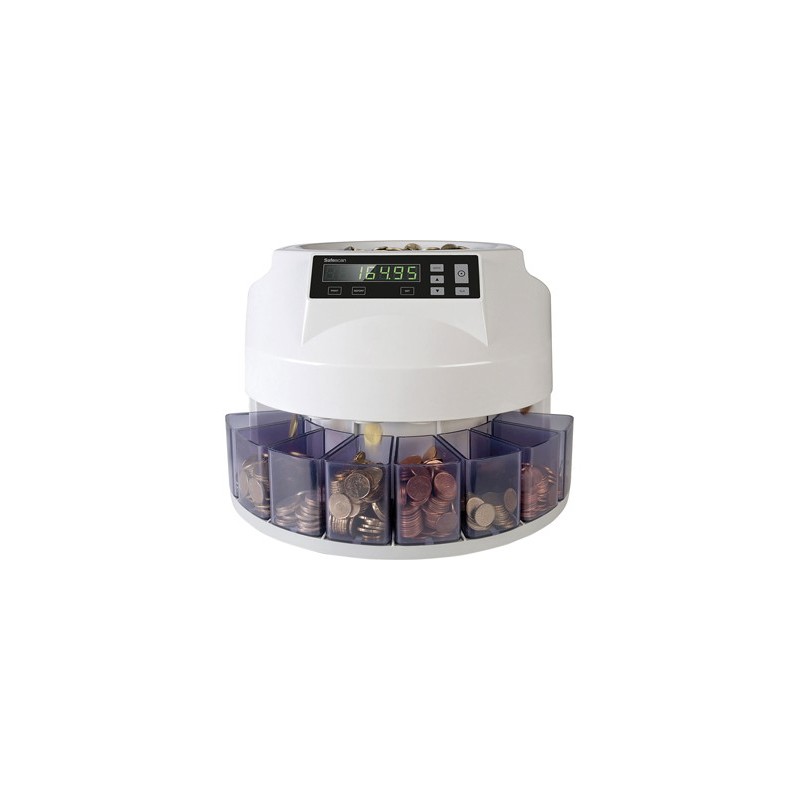 Conta e classifica 220 moedas por minuto. Capacidade de 300-500 moedas. Valor total e quantidade por denominação. Exporta os resultados da contagem para a impressora (opcional). Pára automaticamente quando uma bandeja fica cheia. Rápido e fácil de usar.