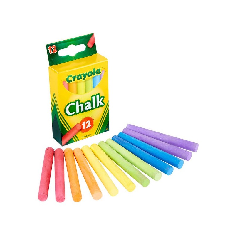 Conjunto de 12 paus de giz anti-poeira coloridos para quadros negros. São arredondados, resistentes e de fácil limpeza. Recomendado para crianças de idade 3+. Por conter peças pequenas e risco associado de ingestão e asfixia é contra-indicado para crianç
