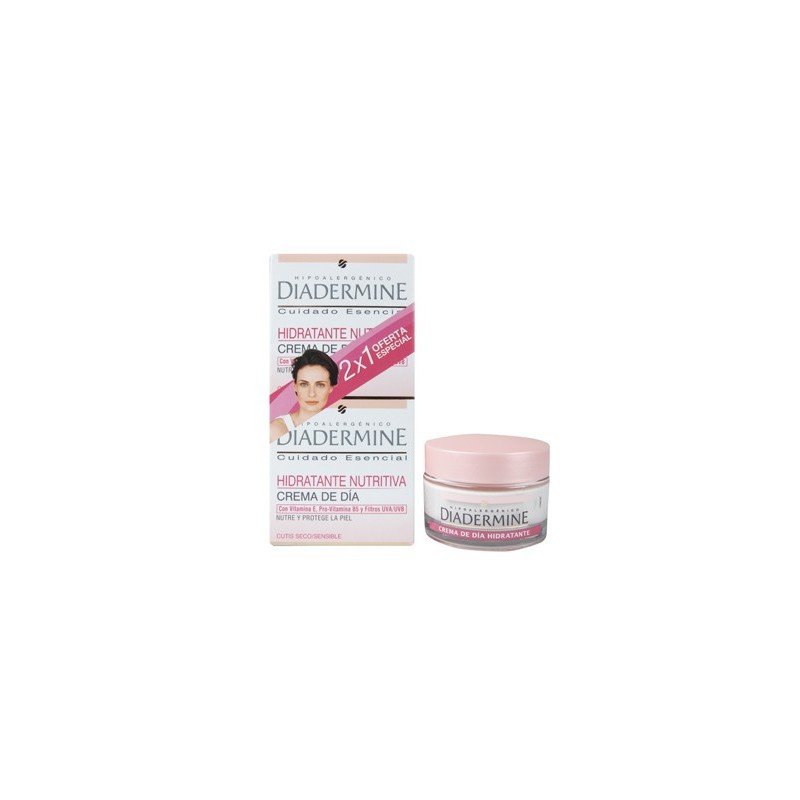Creme hidratante facial de dia para peles secas e sensíveis. Nutritivo de uso diário. Perfeito para repor as reservas de hidratação da pele e protegê-la das agressões externas. Para uma pele suave e elástica. 50 ml. Pack de 2 unidades.
