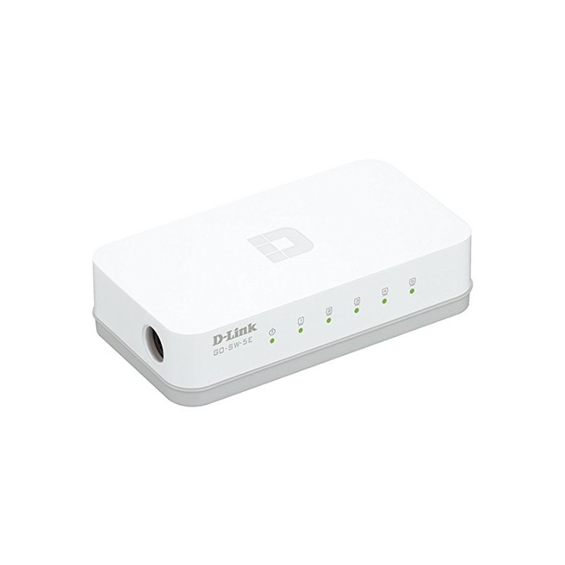 D-Link GO-SW-5E. Tipo de comutador: Não-gerido. Tipos de portas ethernet Basic switching RJ-45: Fast Ethernet (10/100). Normas de Comunicações: IEEE 802.3, IEEE 802.3az, IEEE 802.3x. Cor da caixa: Branco, Visor com LED duplo: Atividade, Ligação