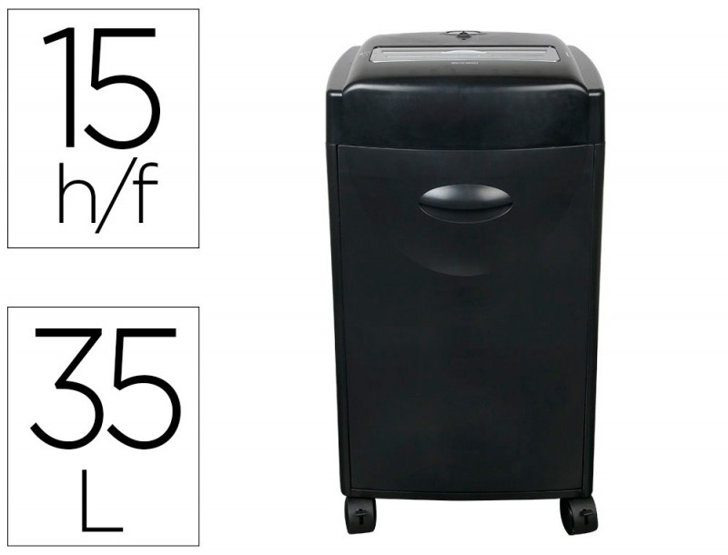 Capacidade de corte: 15 folhas. Corte em partículas de 4 x 30 mm. Largura de entrada: 230 mm. Cesto de 35 litros. Arranque e paragem automática. Retrocesso. Proteção contra sobreaquecimento. Destrói agrafes, clips e cartões de crédito. Nivel de segurança