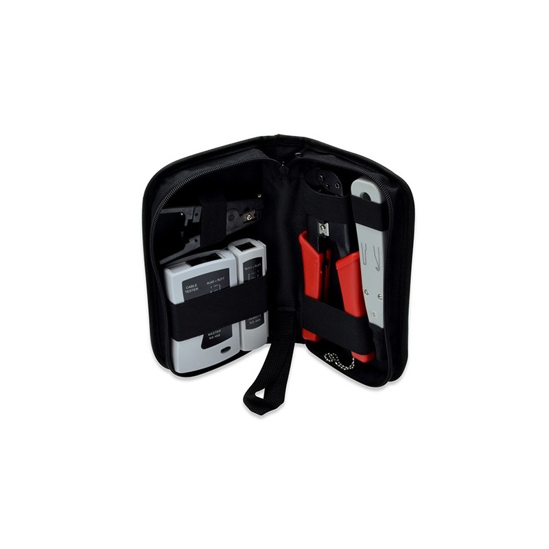 All necessary tools for field installation in one set. LAN-Tester RJ11, 12 and 45 LSA Punch Down Tool with cable cutter Crimping Tool RJ11, 12 and 45 Cut and Stripping Tool Textile bag