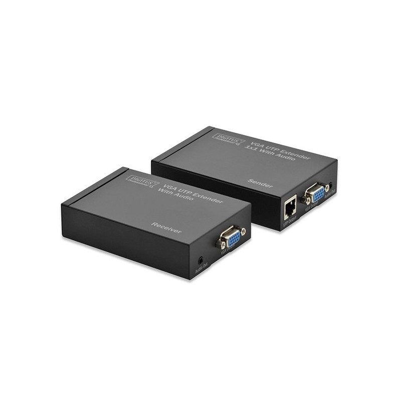 Easy and convenient distribution for VGA signals up to 300 m - Place your displays wherever you want without VGA cable limitations. Cat 5 VGA extender consisting of transmitter and receiver unit High resolution possible up to 1920 x 1200 pixels