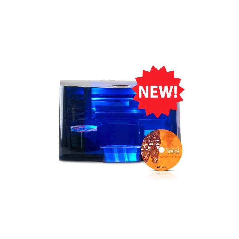 Liga à porta USB3. Apenas para imprimir as capas dos CDs, não inclui gravadores. Usa 1 tinteiro de alta capacidade para todas as cores. Tem reservatório para 50 discos, inclui kit Kiosk para aumentar a capacidade para 100 discos de cada vez. Vem com sof