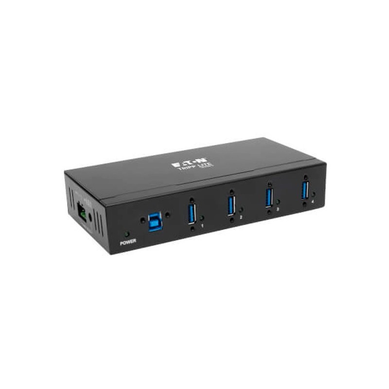 Tripp Lite U360-004-IND. Interface do host: USB 3.2 Gen 1 (3.1 Gen 1) Type-B, Interfaces de hub: USB 3.2 Gen 1 (3.1 Gen 1) Type-A. Velocidade real de transferência: 5000 Mbit/s, Cor do produto: Preto, Material do corpo do produto: Metal. Tipo de fonte de