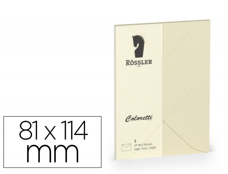 fiber_manual_record Adicionar à Wishlist Avaliação(0) ENVELOPE ROSSLER COLORETTI C5 COR CREME 157X225 MM PACK DE 5 6,75 €5.49 s/Iva.Preço