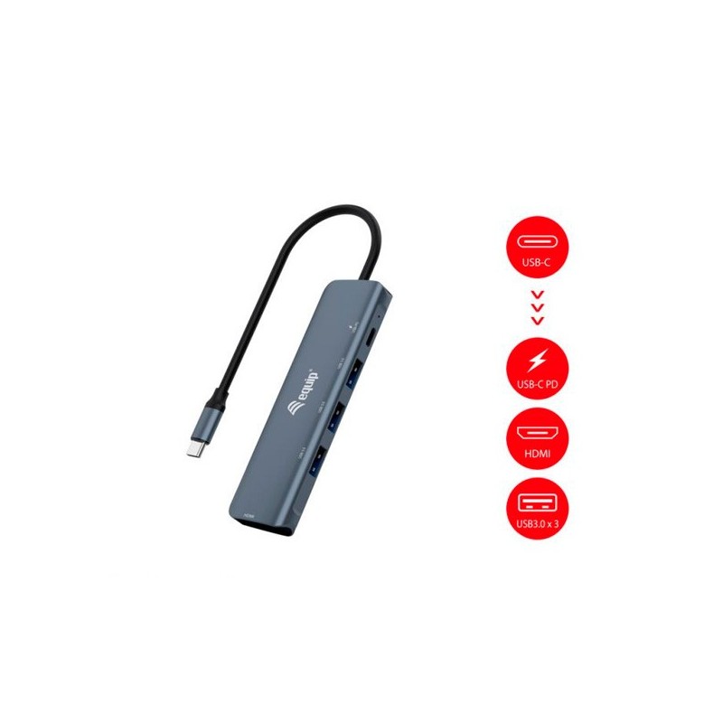 USB-C macho (compatível com Thunderbolt 3/4)Suporta resolução HDMI de até 4K*2K 30HzPorta USB 3.2 Gen1 supervelocidade (5Gb/s) x 3Porta de carregamento USB-C compatível com a tecnologia USB Power Delivery (PD) 3.0Fornecimento de energia: 100 W máx.Carcaç