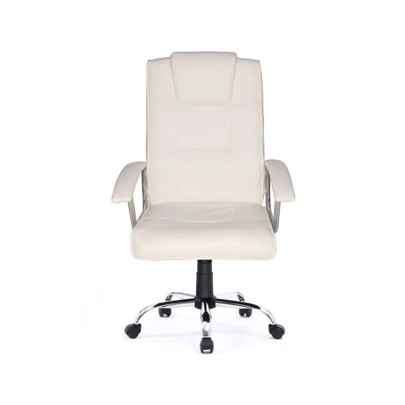 Cadeira de escritório Equip® com suporte lombar e encosto de cabeça, braços fixos cromados com apoio almofadado e pé central cromado de cinco rodízios com giro de 360 graus que permitem grande mobilidade ao ocupante e aumenta a eficiência e comodidade no