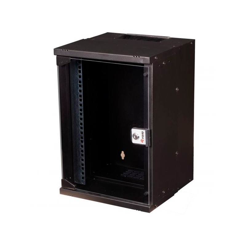 Gabinete 09U, projetado para desempenho ideal em todos os espaçosArmário de montagem em parede 300X300MMEnviado em embalagem plana para fácil transporteO gabinete vem com uma porta frontal de vidro temperado para fornecer resistência incomparável, manten