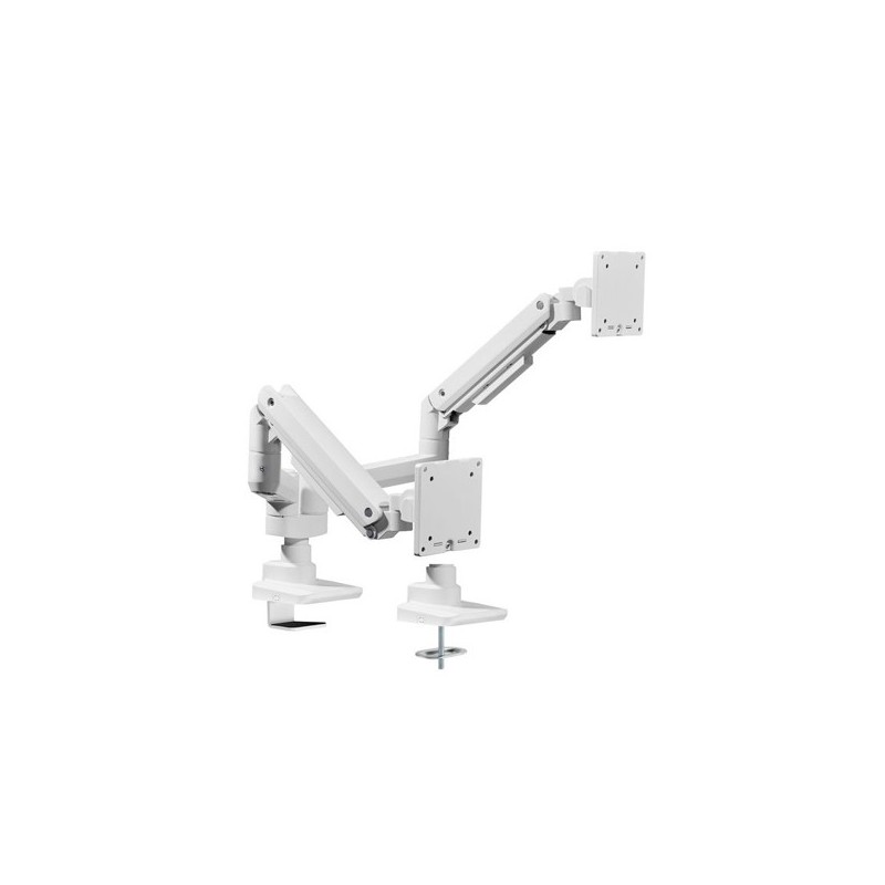 Máx. Capacidade de carga: 20Kg (por tela)Máx. VESA: 100x100Construção em alumínio resistente e leveA estrutura da mola a gás oferece uma apresentação perfeita do contrapeso em todas as direçõesO medidor de tensão da mola integrado pode ser facilmente aju