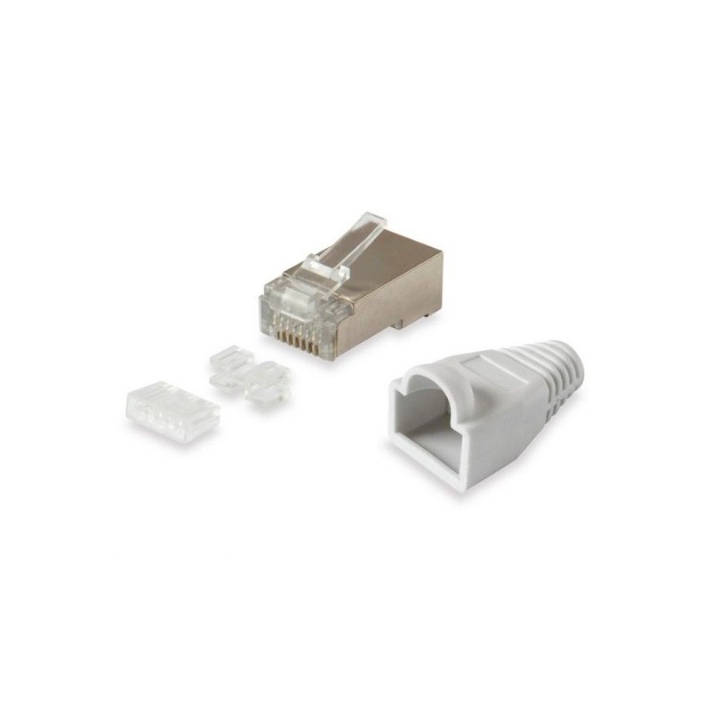 Equip 121181. Conetor: RJ45, Cor do produto: Prateado, Material: Sintéticos ABS, Metal. Peso: 260 g, Largura: 22,5 mm, Profundidade: 11,7 mm. Quantidade por conjunto: 100 unidade(s). Comprimento da embalagem: 180 mm, Profundidade da embalagem: 240 mm, A