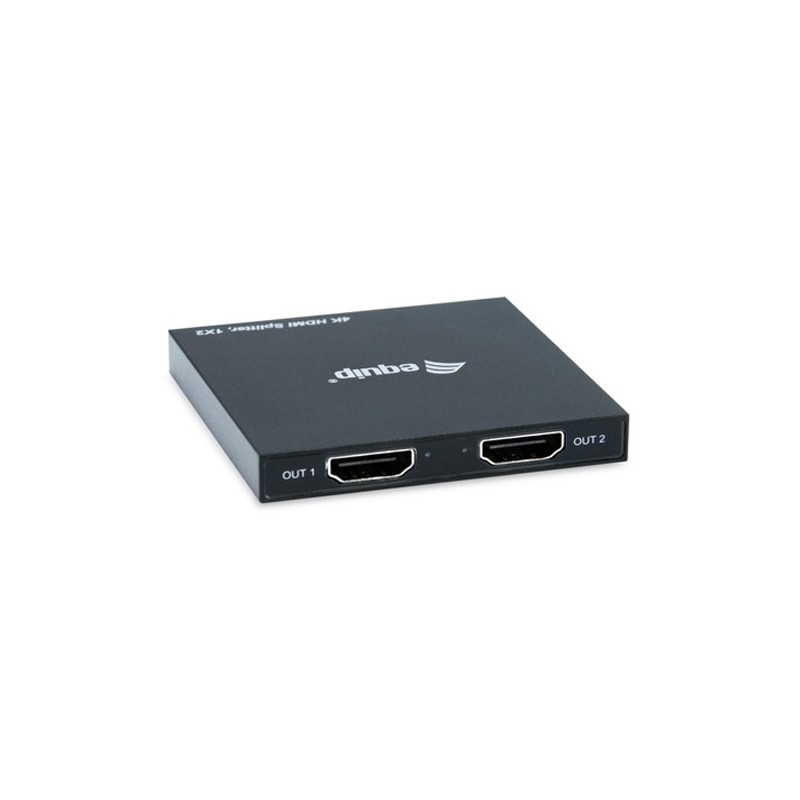 Equip 332715. Tipo de porta vídeo: HDMI, Saída de vídeo: 2x HDMI. Resolução Máxima: 3840 x 2160 pixels, Cor do produto: Preto, Material do corpo do produto: Alumínio. Largura: 65 mm, Profundidade: 9 mm, Altura: 65 mm. Comprimento da embalagem: 100 mm, L