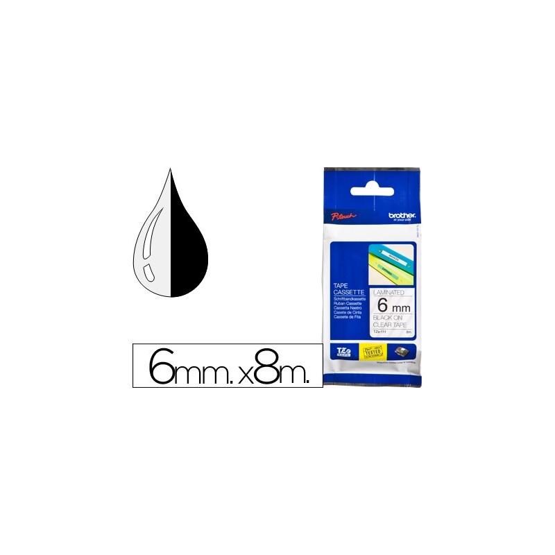 FITA BROTHER TZ-111 TRANSPARENTE-PRETO 6MM LONGITUDE 8 MT