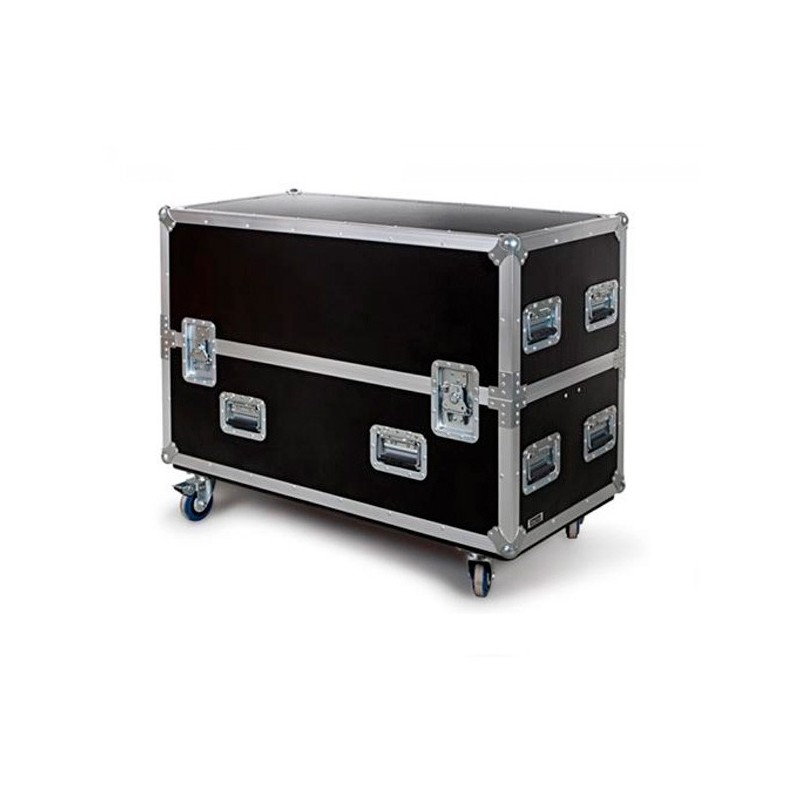Caixas de transporte para 2 ecrãs de plasma. Em madeira contraplacada revestida e forro interno de foam, interior com divisões para 2 ecrãs de plasma e espaço lateral adicional para 2 suportes ou material diverso, tampa com fecho hermético, asas de trans