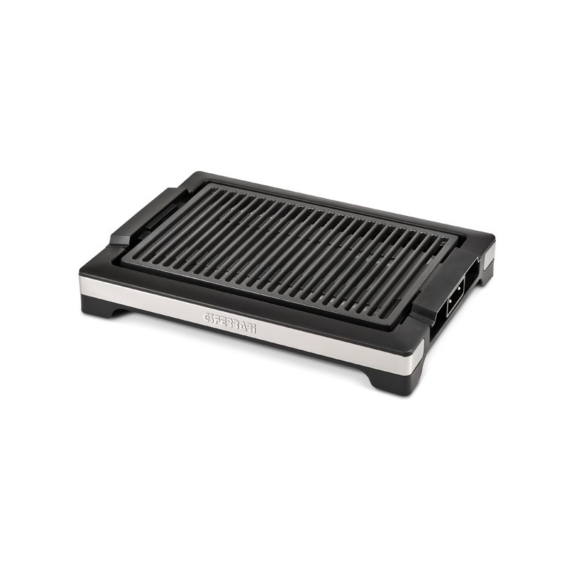 Potência: 2000W Elemento de aquecimento integrado na placa, para cozinhar sem mau cheiro Dimensão da placa antiaderente: 37 x 24,5 cm Termostato para regulação de temperatura Carcaça em plástico anti-queimadura Com dispositivo de segurança