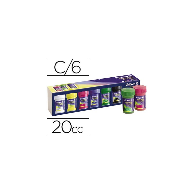 Guache para uso escolar. Estojo com 6 cores sortidas: branco, amarelo, magenta, azul, verde e preto. Ideal para utilizar em papel, cartolina, madeira, tela, pasta para modelar e argila.