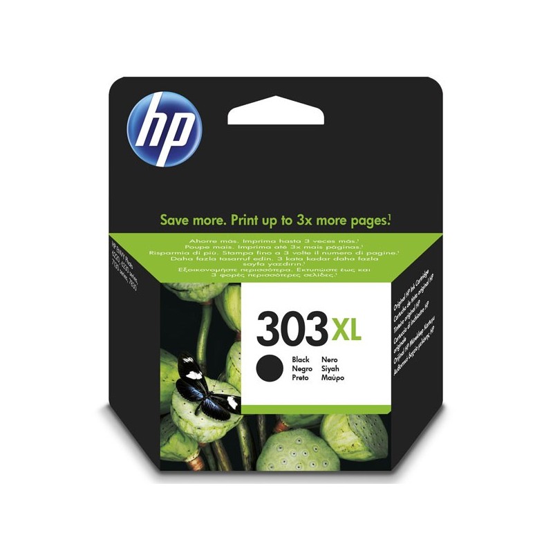 Tinteiro HP Original 303XL de elevado rendimento (Preto)Cor(es) de consumíveis de impressão: PretoTamanho da gota de tinta: 12 plTipos de tinteiros: Com pigmentosRendimento por página (preto e branco): aprox. 600 pág.