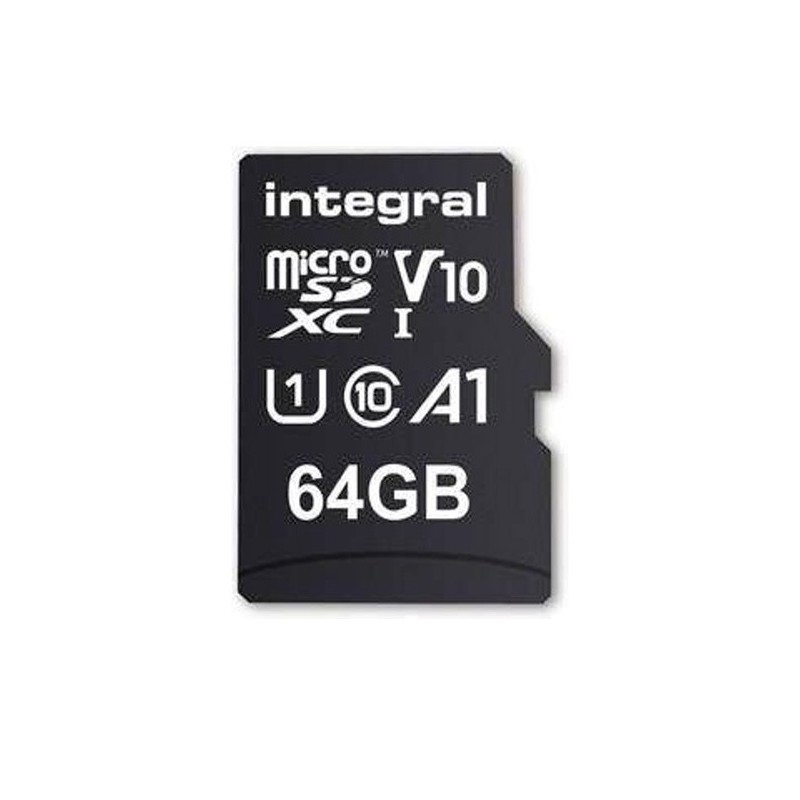 Integral 64GB HIGH SPEED MICROSDHC/XC V10 UHS-I U1. Capacidade: 64 GB, Tipo de flash card: MicroSD, Tipo de memória interna: UHS-I, Velocidade de leitura: 100 MB/s, Classe de velocidade UHS: Class 1 (U1), Classe de velocidade de vídeo: V10. Cor do produ