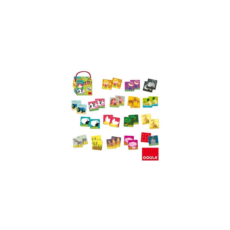 JUEGO DE MEMORIA. CONTIENE 34 FICHAS GIGANTES DE CARTON. DIBUJOS Y COLORES MUY VIVOS. ESTE JUEGO INTRODUCE AL NIÑO AL MUNDO DE LA GRANJA. ESTIMULA L A RETENCION VISUAL. LA CAJA CONTIENE UNA FICHA A TAMAÑO REAL. CONTIENE INS TRUCCIONES DEL JUEGO. A PARTIR